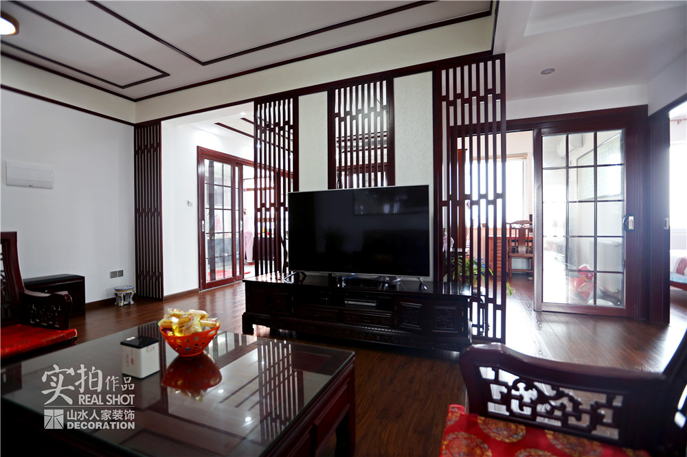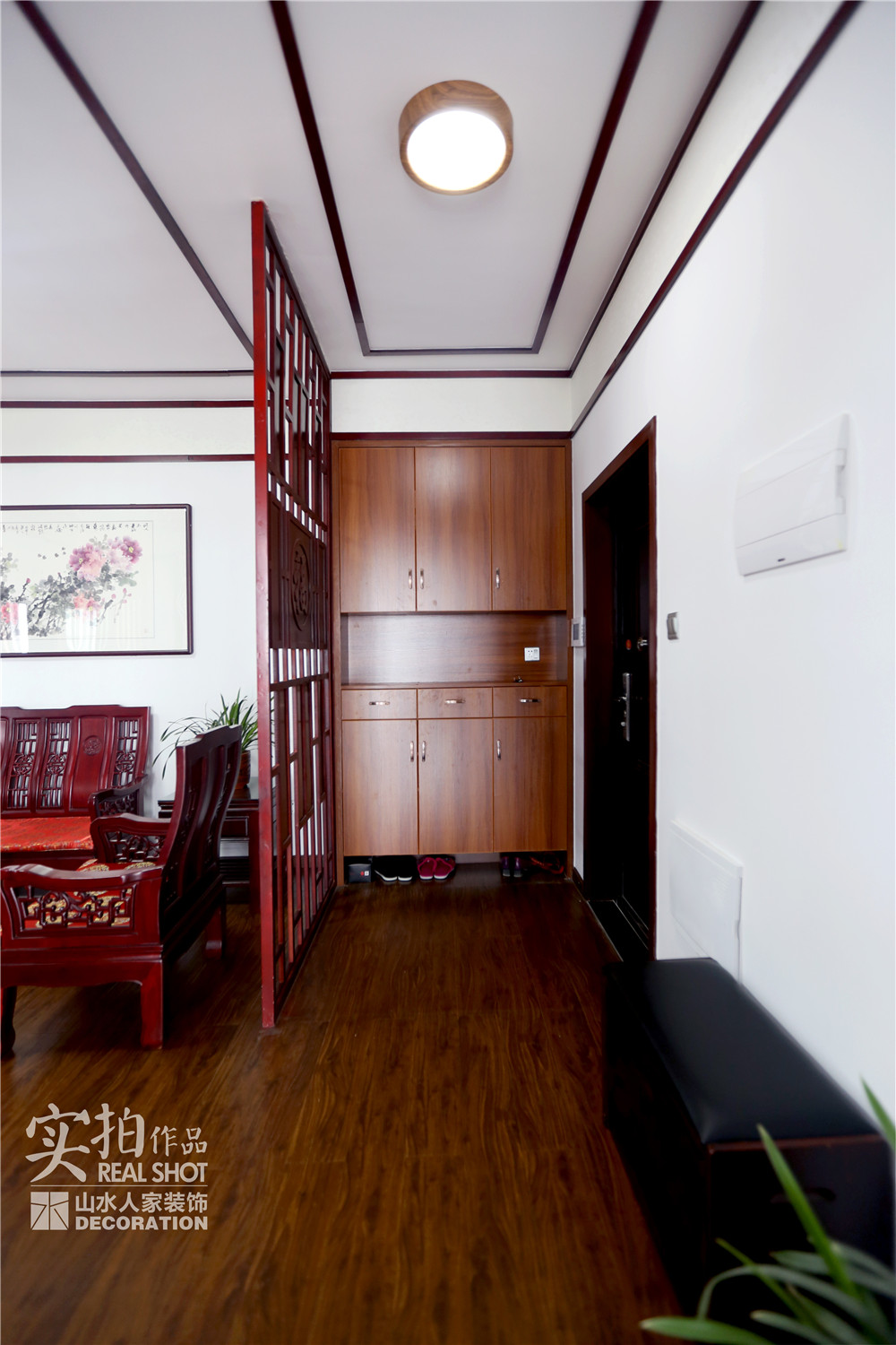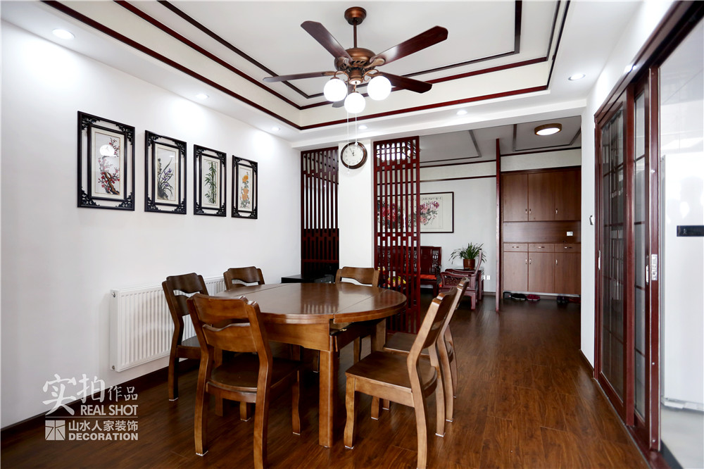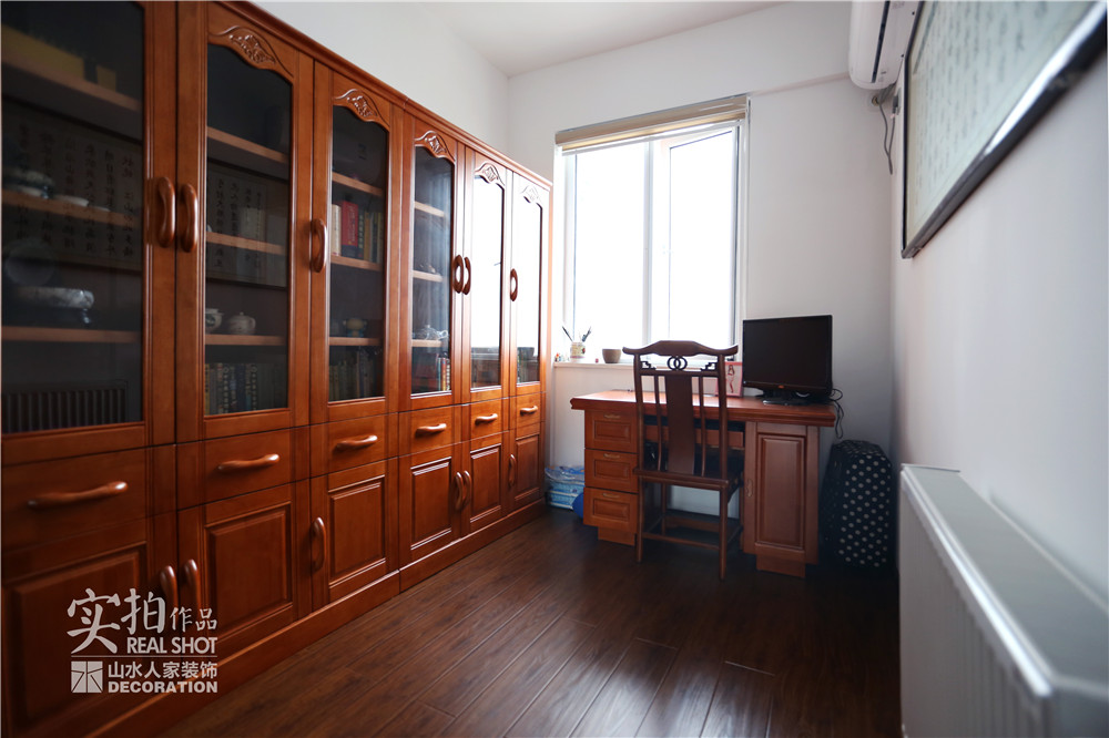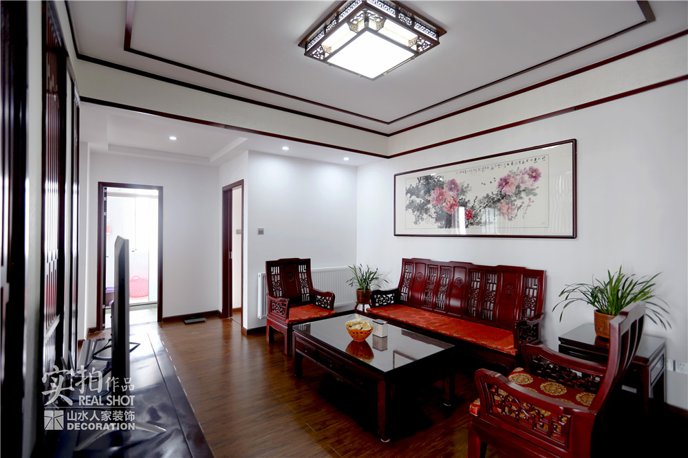 設(shè)計(jì)說(shuō)明:業(yè)主是退休了的職工,所以對(duì)于家庭裝修上的要求相對(duì)更偏向于實(shí)用環(huán)保,但對(duì)于男主人而言更多的希望能把自己對(duì)于古玩字畫(huà)的興趣添加在自己生活的空間中。所以也就有了后期風(fēng)格上的基本定位,結(jié)合業(yè)主已經(jīng)購(gòu)買(mǎi)了一組實(shí)木紅木家具的實(shí)際情況,特意在對(duì)于客廳的空間布局上做出了相對(duì)應(yīng)的安排。