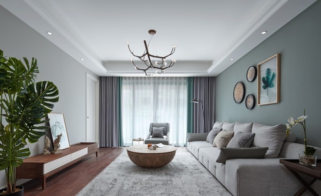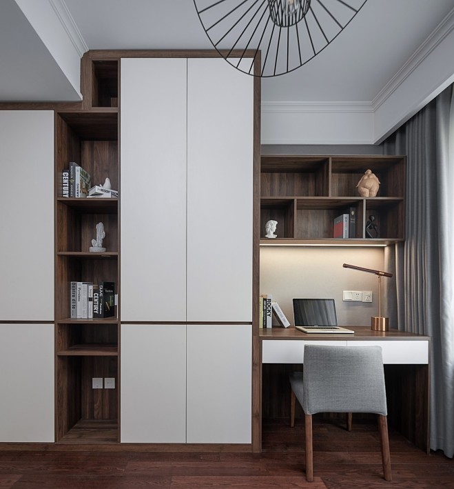 設(shè)計(jì)說(shuō)明:房主是三代同堂四口之家,房主本人四十歲左右,家有一老人在,小孩在外地上班很少在家,希望房子能簡(jiǎn)潔出彩,重在功能和儲(chǔ)物。平時(shí)偶爾在家辦公、喜歡炒炒股。經(jīng)過(guò)反復(fù)溝通后確定樸實(shí)自然的北歐風(fēng)。因?yàn)榉啃椭幸?guī)中矩房主也比較喜歡,不想有太多的結(jié)構(gòu)調(diào)整,所以本案設(shè)計(jì)主要重心放在了空間色彩和材質(zhì)搭配上、多采用原木紋的柜體和素色墻布的搭配,紋木色的穩(wěn)重樸實(shí)、加上調(diào)色搭配的軟裝墻布、窗簾營(yíng)造了溫馨、不失靈動(dòng)、活力居家氛圍