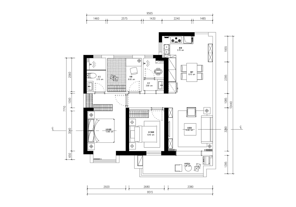 簡(jiǎn)潔干練的線條和自然元素紋理搭配的大面,精致不多余的裝飾手法,屋內(nèi)每一處視角都散發(fā)著低調(diào)奢華的即視感。即簡(jiǎn)約而不簡(jiǎn)單的真實(shí)表達(dá),以立體構(gòu)成和平面構(gòu)成為主??蛷d背景墻采用的大理石、kd灰橡木飾面等一些材質(zhì)綜合運(yùn)用在了客餐廳,整體給人的感覺就是高級(jí)大氣很穩(wěn)重,射燈我們選擇的是一個(gè)偏咖色的暖色調(diào)來作為整體的點(diǎn)綴。就餐空間設(shè)計(jì)上,做了一個(gè)開放式的廚房,使餐廳更加的多元化,好友聚餐以及日常制作美食都能滿足,餐桌一邊設(shè)計(jì)的是餐邊柜和酒柜,加上無主燈的加持,高級(jí)感滿滿,并且不失溫馨??蛷d背景墻采用的大理石、kd灰橡木飾面等一些材質(zhì)綜合運(yùn)用在了客餐廳,整體給人的感覺就是高級(jí)大氣很穩(wěn)重,射燈我們選擇的是一個(gè)偏咖色的暖色調(diào)來作為整體的點(diǎn)綴。臥室使用了和客廳、書房樣的綠色,空間上保持了連貫性,我們根據(jù)空間性質(zhì)去決定色塊的存在比例大小,與地板的木色搭配也相得益彰。廚房打開做開放式,空間更加通透。廚房餐廳整體感更完整。