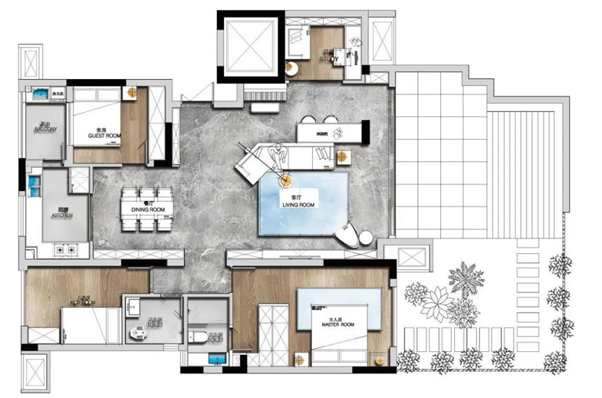 中建鉑公館105平現(xiàn)代簡約風格裝修效果圖