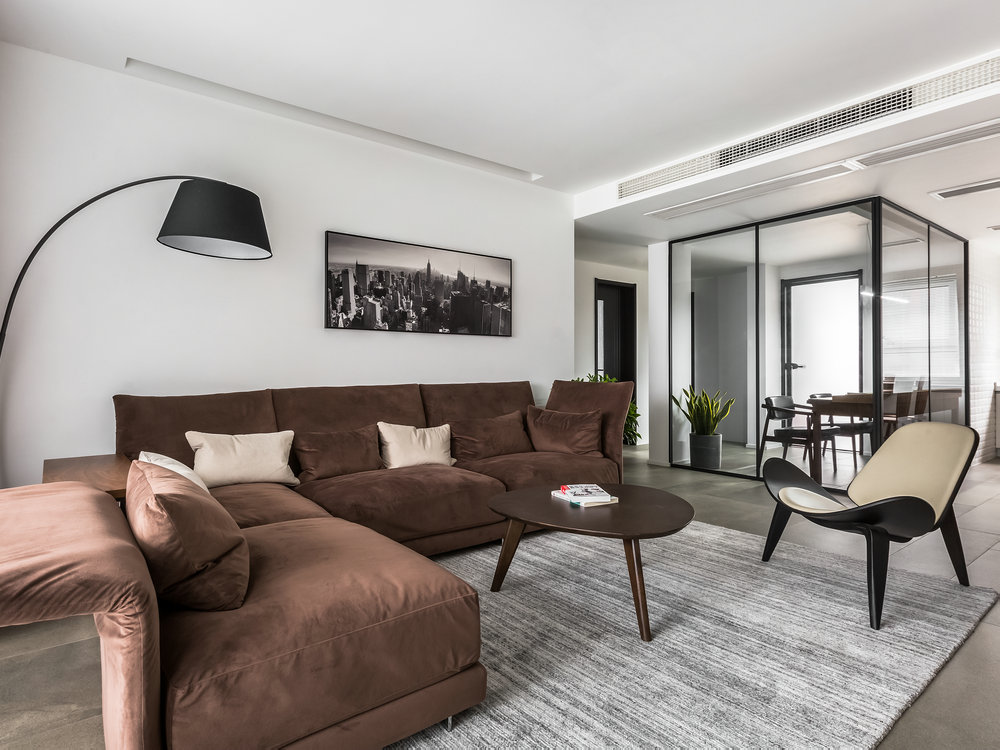 本案溝通前期,考慮到最多的便是家里的采光和通風(fēng),在設(shè)計(jì)師的建議下,客餐廳及書房、陽臺(tái),統(tǒng)一采用不銹鋼玻璃門,最大程度的提高室內(nèi)的采光與通風(fēng);而主臥衛(wèi)生間,則采用鋼化玻璃做隔斷,美觀實(shí)用且大氣;