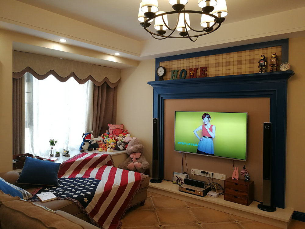 中鐵國際城95平美式風(fēng)格三室兩廳裝修效果圖