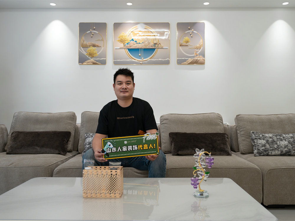 電視背景墻用到用到木飾面+格柵,觀感特別治愈。將電視做成內(nèi)嵌式,不占空間的同時,也方便觀看。旁邊還擺放著梅花鹿擺件,鹿”與“祿”諧音,象征“富?!?,故深得業(yè)主的喜愛。