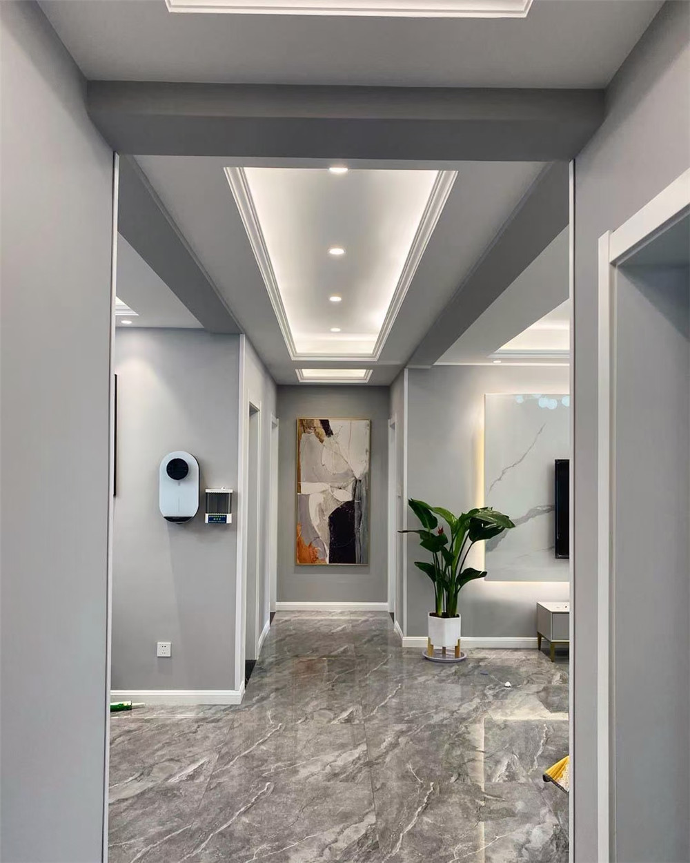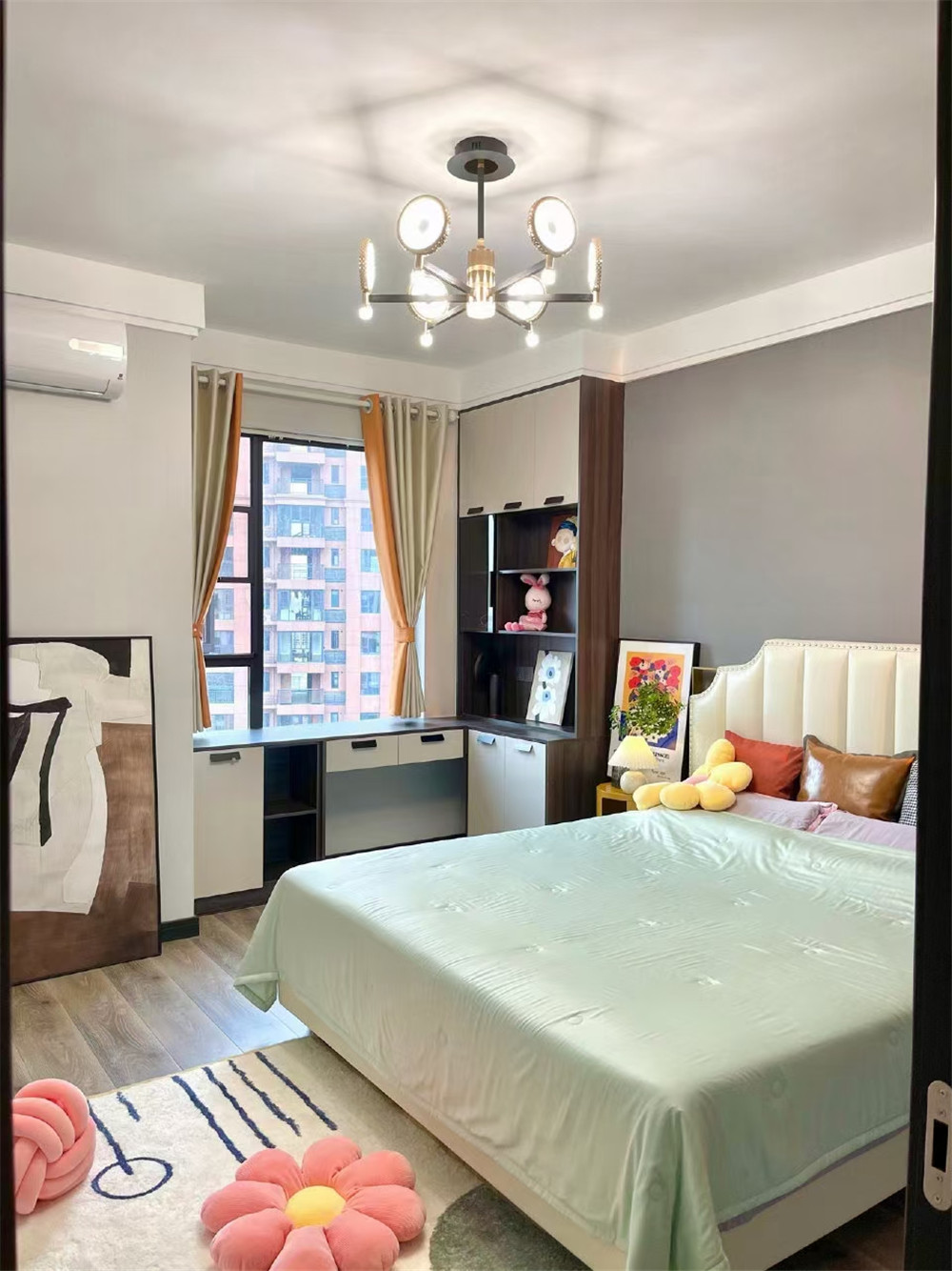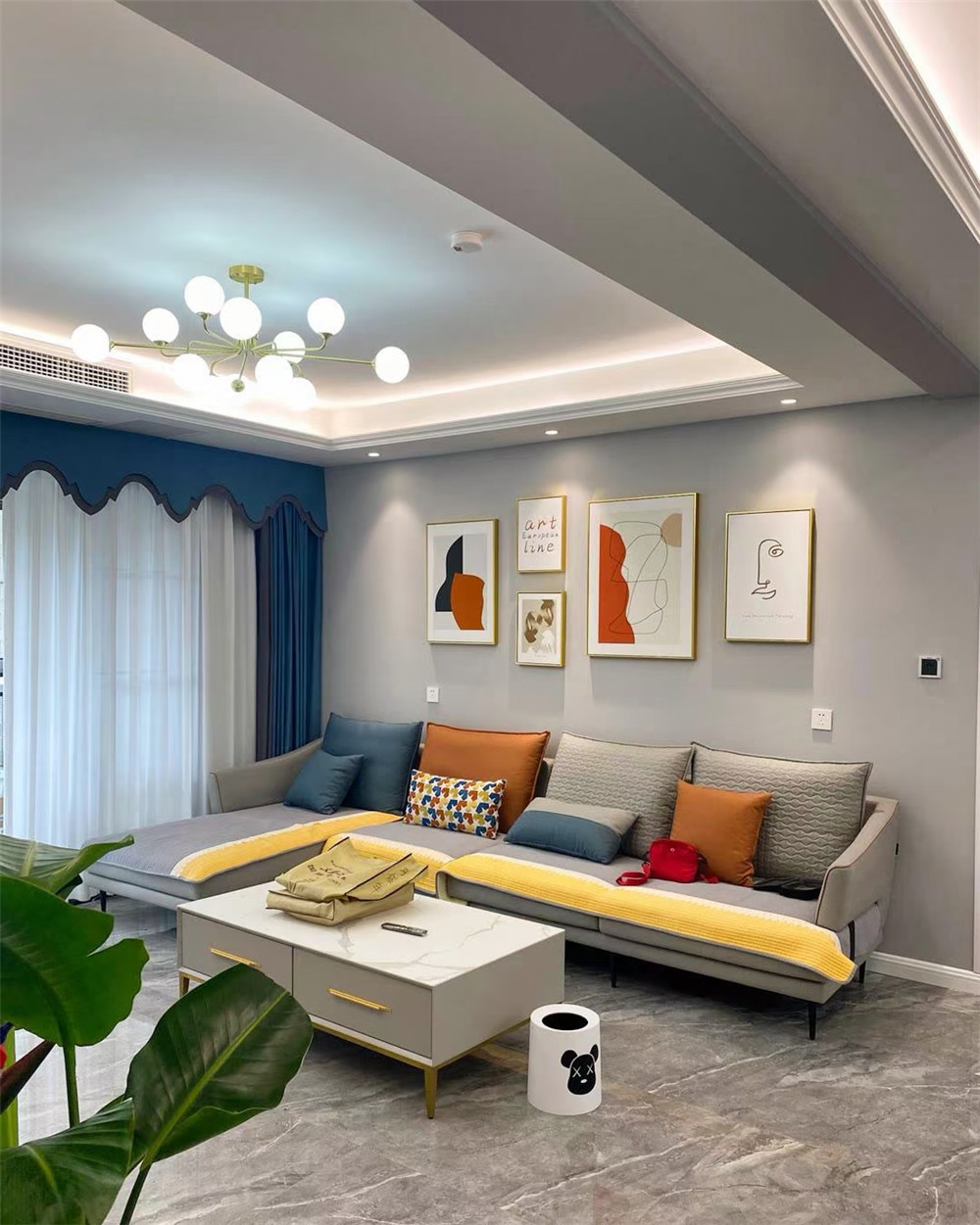 客廳背景墻采用現(xiàn)在比較流行的巖板鋪貼造型,墻面采用的是乳膠漆調色處理。簡約而不簡單,也比較環(huán)保。因為家里后期有老人小孩的居住,環(huán)保這一塊還是非常重要的。沙發(fā)背景就是使用的掛裝飾畫,看起來整體比較協(xié)調。臥室這一塊考慮到兒童房的設計,就采用了榻榻米的布置格局。房間簡約溫馨,房間吊頂不考慮中央空調和風管機,所以就采用簡單的石膏板雙眼皮設計,還有石膏線條的設計,前后呼應一種簡約不簡單的低調華麗的裝飾效果。