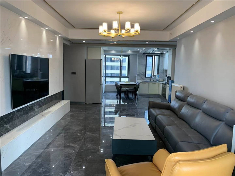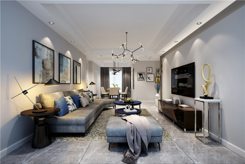 客廳選用環(huán)形吊頂?shù)脑O(shè)計(jì),進(jìn)而拉伸層高,豐富空間層次感。無(wú)主燈的設(shè)計(jì),處處見(jiàn)光源,照得室內(nèi)透亮。地面鋪了一層地毯,起到吸音防塵的效果。