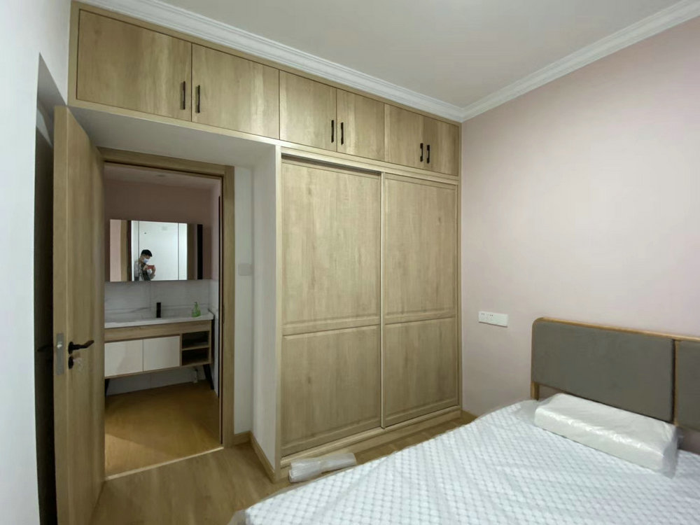 主臥整體以奶白色+原木色打底,給人清爽干凈的直接感受。加上一些淺棕色床頭、掛畫實(shí)現(xiàn)色調(diào)中和,提供了一個(gè)優(yōu)良舒適的睡眠環(huán)境。房間燈光格外明亮,除去頭頂?shù)闹泄诺鯚敉?,還有壁燈輔助,營(yíng)造溫暖氛圍。
