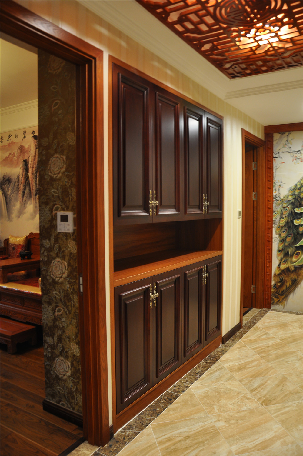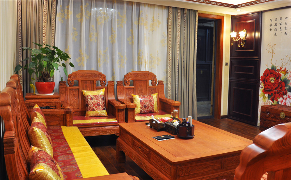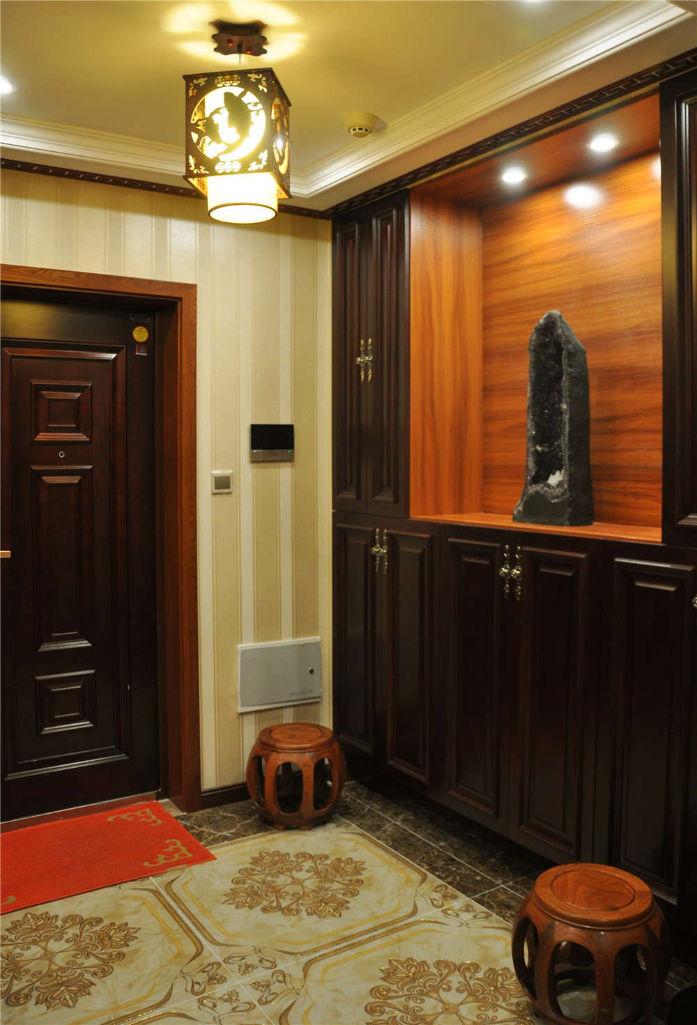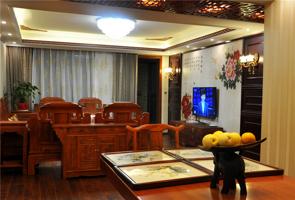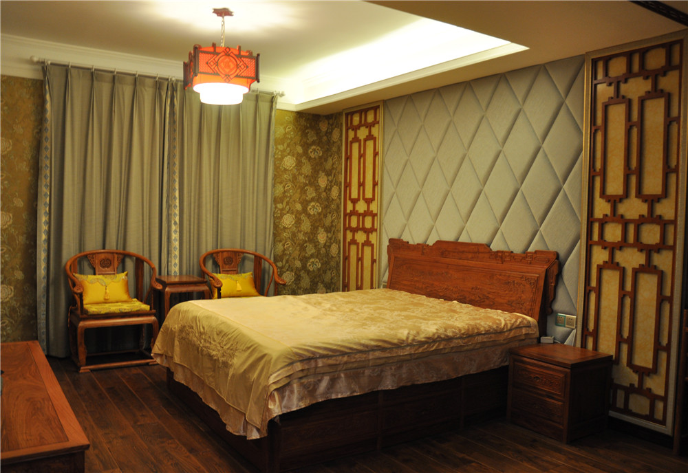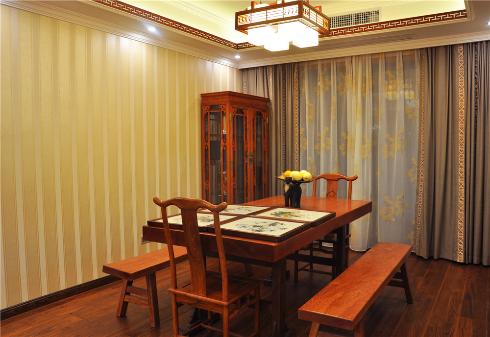 本案并沒有把古色古香的家具照搬,也沒有完全按照古典中式裝飾風(fēng)格來搭配,只是用中式的一些雕花元素,裝飾字畫加以點(diǎn)綴。將中式的一些元素加以創(chuàng)新簡(jiǎn)化放在了簡(jiǎn)約的風(fēng)格中不僅突出了簡(jiǎn)約的通透大氣容易打理,也把中式風(fēng)格的沉穩(wěn)和包容體現(xiàn)出來。