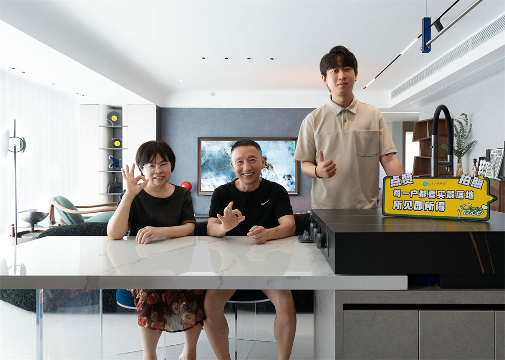本案戶型方正,南北通透,因?yàn)闃I(yè)主家里人口較多,對房間數(shù)量要求較大,因此設(shè)置了四間臥室。除此之外,還進(jìn)行了其他方面的改造:(1)打通陽臺,并連接客廳和次臥,整體形成回字形動(dòng)線,空間更顯通透;(2)小區(qū)樓棟結(jié)構(gòu)為電梯入戶,所以部分日常鞋履可放置于門廊外;(3)餐廳小陽臺區(qū)域加裝水槽,滿足更多西廚功能;(4)公衛(wèi)干區(qū)外置,有效實(shí)現(xiàn)干濕三分離。