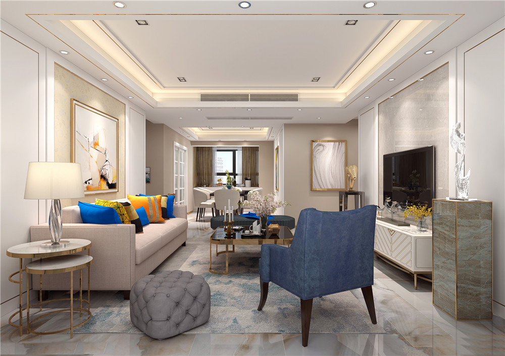 保利城135M2輕奢風(fēng)格效果圖案例欣賞