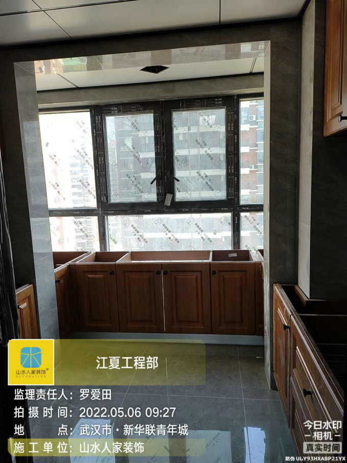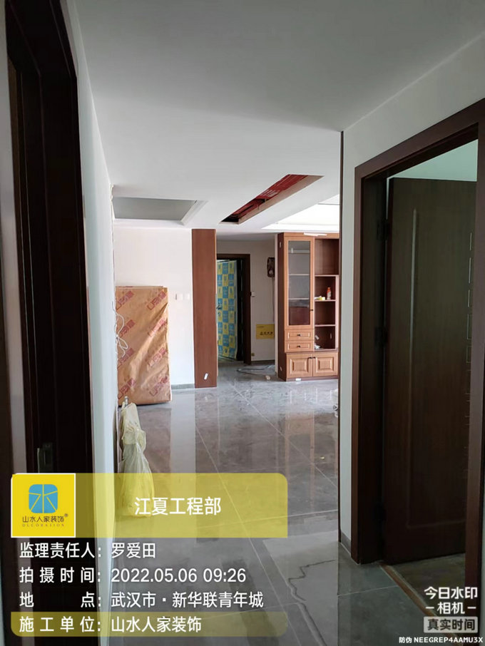 2022年5月6日山水人家裝飾江夏工程部監(jiān)理在新華聯(lián)青年城小區(qū)的裝修工地巡查,現(xiàn)場進(jìn)行的是主材安裝階段。